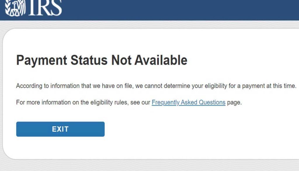 Unfortunately, however, many people (millions?) can’t get any information out of this tool. They keep getting a message saying: “Payment Status Not Available. According to information that we have on file, we cannot determine your eligibility for a payment at this time.” It can be very frustrating if you’re one of the people getting this message every day—believe me, I know, because I’m one of them.